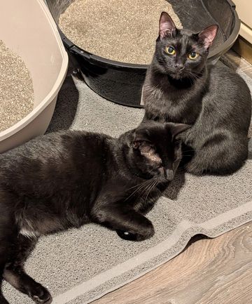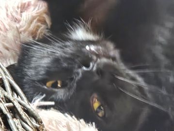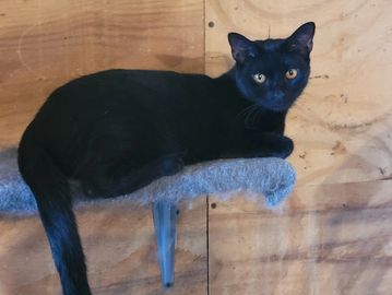 Mischief has been with us since he was born to his mom Calliope who is still in our care as well. His brothers and sisters have all been adopted but Mischief bonded with Gremlin who is very shy and not trusting of people other than his foster family. With both of them being black and not super friendly they have never been adopted. But that is ok because they are part of our family.